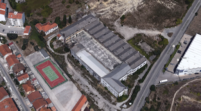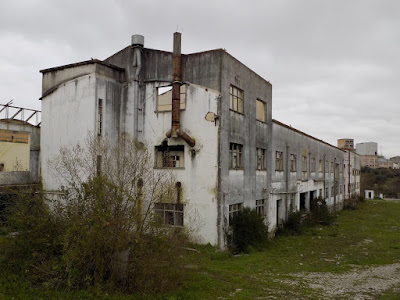 O material que tenho para fazer este post consiste em fotografias das ruínas das primitivas instalações fabris (assinaladas na foto) e da Lídia chateada por eu a levar a passear para ali. Prometo o passeio na praia ao entardecer para breve.