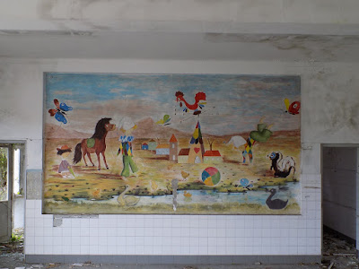 Desta vez o passeio foi até às ruínas das antigas instalações da Triunfo, para a azar da patroa. Começámos pela fábrica de bolachas, com um infantário para os filhos dos funcionários adjacente: